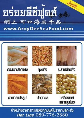 หวัดดีคะ!!! เปิดแล้วคะ..ตลาดค้าปลีก-ส่ง อาหารทะเลแห้งนานาชนิด http://www.aroydeeseafood.com !!!.. อาทิ กุ้งแห้งนานาชนิด ปลาหมึกแห้ง กระเพาะปลา ปลาทะเลแห้ง สมุน ไพร และอาหารแปรรูปทุกชนิด จำหน่ายในราคาถูกทั้งปลีกและส่ง ด่วน!!!ทางร้านเปิดโอกาสให้ผู้สนใจร่วมสมัครเป็นตัวแทนจำหน่ายสินค้าได้แล้ว วันนี้(รับจำนวนจำกัด..) ราคาสินค้าเริ่มต้นเพียงแค่10บาทเท่านั้น สามารถเข้าชมตัวอย่างสินค้า สั่งซื้อสินค้าOnline 24Hrs.ได้ที่ http://www.aroydeeseafood.com