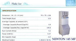 ขายเครื่องทำน้ำแข็งเกล็ด ยี่ห้อ Newton รุ่น NT-145