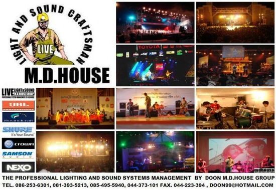 ออกแบบติดตั้ง จำหน่าย ให้เช่าเครื่องเสียง เครื่องดนตรี ไฟ แสง สี เวที โดย M.D.HOUSE 086-253-6301