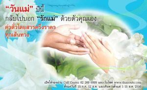 ไทยรูท ดอทคอม จัดโปรโมชั่น กลับบ้าน..เยี่ยมแม่ 1-15 สิงหาคมนี้ ตั๋วรถทัวร์ VIP,ป.1 ครึ่งราคา ทุกเส้นทาง