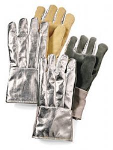 Specifications: 16-oz/sq. yd. Aluminized Rayon gloves offer long-wearing leather palms. fully lined with Kevlar/Carbon felt, plus the insulating strength of wool inner lining. One size fits all.