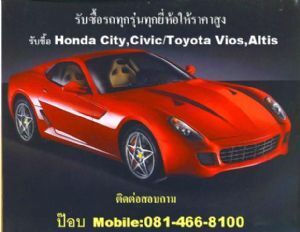 รับซื้อรถทุกรุ่นทุกยี่ห้อให้ราคาสูงกว่าเต็นท์ (นิดหน่อย) ติดต่อที่อื่นแล้วไม่จบลองโทรหาเราเผื่อจะจบได้นะจ๊ะ ยินดีต้อนรับเซลล์โชวร์รูมรถป้ายแดงทุกท่าน โทรเช็คราคาได้ตลอด 22 ช.ม. ขอพัก 2 ช.ม.ครับ บริการ สุภาพอารมณ์ดี๊ดี Honda City,Civic/Toyota Vios,Altis ปี 2003 ขึ้นไปให้ราคาสูงด่วน เพราะเรามีลูกค้าสั่งอยู่ (ถ้าตรงรุ่นจะให้ราคาสูงกว่าเต็นท์)