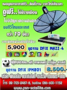 ดูรายละเอียดเพิ่มเติมได้ที่ www.psn-satellite.com หรือโทร 02-703-2487-8