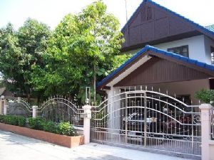 - รั้วบ้านและประตู stainless บรรยากาศร่มรื่นด้วยต้นไม้ใหญ่รอบบ้าน