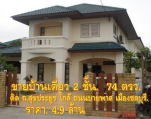 ขายบ้านเดี่ยว 2 ชั้น ติด ถ. สุขประยูร ใกล้บายพาส เมืองชลบุรี.