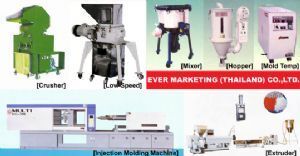 จำหน่าย เครื่องจักรและอุปกรณ์สำหรับอุตสาหกรรมพลาสติก นำเข้าจากต่างประเทศ เช่น เครื่องบดพลาสติก, Hopper Dryer, เครื่องผสมสี, Chiller, Mold Temperature และเครื่องมืออื่นๆครบวงจร (แม่เหล็ก, คีมตัดชิ้นงานไฟฟ้า, ที่ยึดแม่พิมพ์, ขารองเครื่องฉีด)