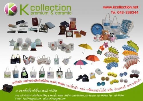 ทั้ง ยังรับผลิตและจำหน่าย สินค้าพรีเมี่ยม ประเภท ของที่ระลึก ของแถม ของชำร่วย ของแจก สินค้าช่วยส่งเสริมการขาย สินค้าเพื่อใช้ในการประชาสัมพันธ์ หรือ เปิดตัวสินค้าในการออกบู๊ธ ของที่ระลึกสำหรับหน่วยงาน ของที่ระลึกสำหรับรุ่น ของที่ระลึกสำหรับงานเกษียณ ของที่ระลึกสำหรับขายเป็นของฝาก ฯลฯ อาทิเช่น -โล่ไม้� โล่อะคลิริก งานไม้/อคลิริก� ตั้งโต๊ะ พร้อมยิงเลเซอร์ (งานด่วนรอรับได้เลย) -เข็มกลัดติดเสื้อ� ปกประกาศนียบัตร ใบประกาศนียบัตร พิมพ์ทอง (ไม่จำกัดขั้นต่ำ) -� ปากกาพลาสติก ปากกาโลหะ ดินสอ ชุดปากกาพร้อมกล่อง -ชุดแก้วมัค แก้วใส� � ชุดแก้วกาแฟ� -นาฬิกาแขวน นาฬิกาข้อมือ นาฬิกาตั้งโต๊ะ -เสื้อคอกลม เสื้อแจ็คเก็ต เสื้อทีม เสื้อรับน้องเสื้อรุ่น หมวก -พวงกุญแจโลหะ พวงกุญแจงานยาง เข็มกลัดโลหะ ร่ม -บัตรสมาชิก บัตรชมรม บัตรพนักงาน -พัดกระดาษ พัด PVC� พัดซี่ � -กล่องกำมะหยี่ -กระเป๋าเป้ กระเป๋าเอกสาร กระเป๋าช็อปปิ้ง กระเป๋านักเรียน ถุงผ้า -โปสเตอร์ สมุดนักเรียน สมุดโน้ต -โยโย่ ซองใส่บัตรพนักงาน สายคล้องคอ และสินค้าอื่นๆ อีกมากมาย พร้อมสกรีนหรือยิงเลเซอร์ (ขึ้นอยู่กับประเภทสินค้า) โลโก้ ข้อความ ลงในสินค้า พร้อมบริการออกแบบงานโลโก้ลงในสินค้าให้พิจารณาก่อนทำการผลิต สามารถเลือกชมตัวอย่างสินค้าได้ที่ www.kcollection.net สอบถามรายละเอียดเพิ่มเติมได้ที่ฝ่ายขาย 043-336344 ,� 081-0580939, 086-4507400, 089-9424440, 089-9424441