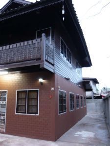 บ้านสร้างใหม่สองชั้น ครึ่งไม้ครึ่งปูน สองห้องนอง สองห้องน้ำ หนึ่งห้องครัว มีพื้นที่รอบบ้าน อยู่เยื้องกับโรงเรียนศรีราจิลาพิพัฒน์