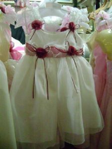 ชุดราตรีเด็กสีขาวปักดอกกุหลาบสีชมพู