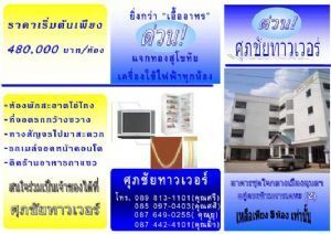 ด่วน ศุภชัยทาวเวอร์ อาคารชุดใจกลางเมืองอุบลราชธานี อยู่ตรงข้ามการเคหะ 2 เหลือเพียง 5 ห้องเท่านั้น ราคารเริ่มต้นเพียง 480,000 บาท /ห้อง สุดคุ้ม ราคาผ่อนเดือนละ 3,500 บาท ธนาคารอาคารสงเคราะห์ สนใจ ติดต่อ คุณศรี 089 8131101