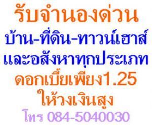 รับจำนอง บ้าน ที่ดิน ทาวเฮาส์ ดอกเบี้ยต่ำสุดพียง1.25 ยุติธรรม คุณบี 084-5040030