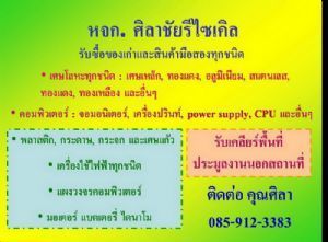 หจก. ศิลาชัยรีไซเคิล รับซื้อของเก่าและสินค้ามือสองทุกนิด ไม่จำกัดประเภทและจำนวน บริการรับซื้อถึงที่ ให้ราคาดี สามารถต่อรองได้หากท่านมีสินค้าจำนวนมาก รับประมูลงานนอกสถานที่ รับซื้อเครื่องจักรตามโรงงาน และรับเคลียร์พื้นที่ รับซื้อเศษเหล็ก ทั้งเหล็กหนาเหล็กบาง เหล็กเส้น เหล็กแผ่น ทั้งสั้นและยาว รื้อโครงสร้าง หรือ โครงป้ายโฆษณา รับซื้อโลหะทุกชนิด ทองแดง ทองเหลือง อลูมิเนียม สแตนเลส ถังสแตนเลสทุกชนิด ขี้กลึง รับซื้อซากคอมพิวเตอร์ หรือคอมพิวเตอร์ที่เสียแล้ว เครื่องปรินท์ แผงวงจรคอมพิวเตอร์และโทรศัพท์มือถือ ลำโพง รวมทั้งอุปกรณ์อิเลคทรอนิกส์ต่างๆ รับซื้อถุงปุ๋ยทุกขนาด ทุกยี่ห้อ จำนวนมากแบบไม่จำกัด ทั้งเก่าและใหม่ รับซื้ออุปกรณ์เครื่องใช้ไฟฟ้าต่างๆ สายไฟ สายโทรศัพท์ แบตเตอรี่ ไดนาโม และเฟอร์นิเจอร์ โต๊ะ เก้าอี้ ตู้ เตียง ทุกประเภท นอกจากนี้ยังรับชื้อพลาสติก กระดาษทุกชนิด สมุด หนังสือ กระดาษหนังสือพิมพ์ ลังกระดาษ กระดาษเอกสาร โบชัวร์ รวมทั้ง กระดาษปรินท์งาน A4 ทั้งที่ใช้แล้วและยังไม่ใช้กระจก เศษกระจกแตก เศษแก้วแตก ขวดแก้วและขวดพลาสติก พลาสติกชนิดต่างๆ ถุงพลาสติก รวมทั้งกรอบพลาสติกด้วย หากท่านใดสนใจสามารถติดต่อได้ที่