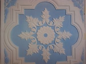 2. ฝ้าอคูลสติก เป็นแผ่นฝ้าเพดาน ผลิตจากแผ่นยิปซัมคุณภาพสูง ตามมาตรฐาน BS 1230 และ มอก.219-2524 ฉลุลายด้วยเครื่องจักรทันสมัยด้านหลังปิดทับด้วยกระดาษกันเสียงสะท้อน ทำให้แผ่นฝ้าเพดาน มีประสิทธิภาพการซับเสียงสะท้อนที่ดีเยี่ยม เหมาะสำหรับห้องประชุม โรงแรม พิพิธภัณฑ์ สถานศึกษา หรือโรงละคร จากลักษณะของแผ่นที่มีการฉลุแผ่นเป็นลวดลาย และติดเยื่อกระดาษกันเสียงสะท้อนไว้ด้านหลังทำให้แผ่น มีประสิทธิภาพการกันเสียงสะท้อนได้สูงกว่าแผ่นยิปซัมหรือวัสดุประเภทอื่น เมื่อทดสอบการสะท้อนเสียงที่ความถี่เสียง 500 Hz และค่าที่ได้ในย่านความถี่นี้ จะเป็นค่าที่นำไปใช้ในการออกแบบการควบคุมเสียงสะท้อนในห้องต่างๆ