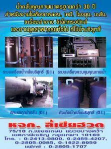 ขายน้ำกลั่น ผู้ผลิตและจำหน่าย D.I.Water(Distilled Water Distributor)02-413-0800 น้ำกลั่น
