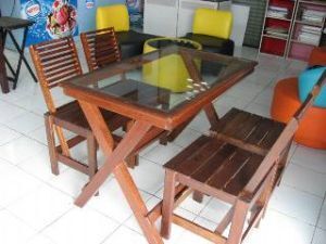 ขายโต๊ะไม้ 60x100x75cm +เก้าอี้ 4 ตัว ตรงกลางเป็นกระจกหนา 1ซม มีทั้งหมด 7 ชุด ชุดละ 3,500บาท