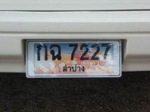 ป้ายทะเบียนประมูลเลขสวย กฉ 7227 ลำปาง พื้นหลังกราฟฟิก รูปรถม้า