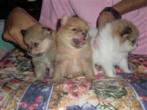 ลูกปอมพ่อสีขาว แม่สีน้ำตาล