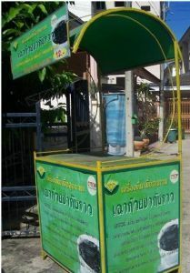 ผมออกแบบซุ้มด้วยตัวเองครับจ้างทำโครงเหล็กและใช้ไม้อัดทำผนังหมดไปซุ้มละ 1800 บาทตั้งแต่เหล็กยังไม่ขึ้นราคานะครับออกแบบเพื่อสะดวกในการยกย้ายสามารถ คล้องกุญแจเอาของใส่ข้างในได้ขนาดประมาณ 1 เมตร คุณสามารถนำไปประยุกต์ทำป้ายใหม่ได้ตามสะดวก ถ้าเหมาหมดคิด 500/ซุ้มครับ
