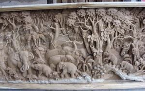 ไม้สัก แกะสลักรูปลาย ป่าดงดิบทางเหนือ ใหม่ ยังไม่ลงสี