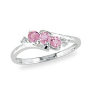 แหวนเงินทัวร์มาลีนสีชมพูประดับเพชร