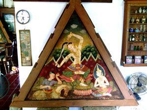 วาดลายไทย บนไม้สัก ทำกรอบด้วยไม้สักอย่างสวยงาม ใช้เป็นของสำหรับ ตกแต่งห้อง หรือ ตกแต่งภายใน ตามต้องการ ขนาด โดยประมาณ 1.70x1.65m