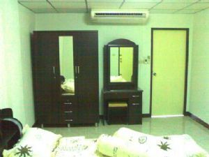เฟอร์นิเจอร์และสภาพห้อง : แอร์ เตียงพร้อมที่นอนใยมะพร้าวอย่างดี ตู้เสื้อผ้าขนาด 3 บาน โต๊ะเครื่องแป้งพร้อมสตู ประตูเหล็กดัดพร้อมมุงลวด กลอนประตูล๊อค 4 ชั้น ห้องน้ำในตัว พื้นปูกระเบื้องทั้งห้อง ผนังใช้สีกันคราบ มีระเบียงเล็กๆ
