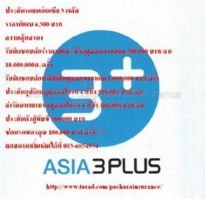 asia 3 plus เบี้ยเริ่มต้น 6,300 บ.ทุนประกัน 100,000-1,000,000 บ.เลือกซ่อมห้างได้ ไม่จำกัดอายุรถ [as