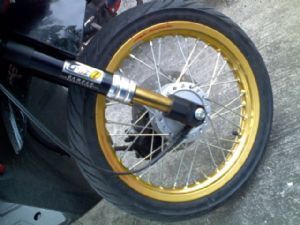 ขายโช้คหน้า Upside down ของ Gazi แบบหูเยื้อง กระบอกดำแกนสีทองครับ ซื้อมาไม่ถึงอาทิตย์ ขายที่ 2,800 บาท
