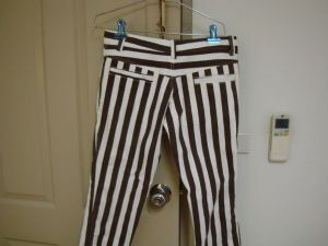 กางเกงขาเดป(เข้ารูปเล็กน้อย ไม่รัดขา) ลายขาวน้ำตาล เอว 30-34 ใได้สบ\ ายคับ กางเกงออกแบบโดยร้านBE70 siam square