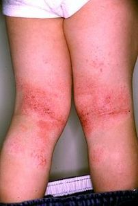 เป็นโรคผิวหนังอักเสบเรื้อรังชนิดหนึ่ง ซึ่งพบบ่อยในเด็กโดยที่ไม่ใช่โรคติดต่อ ไม่ใช้เชื้อรา หรือ ความสรกปรก มักจะเป็นๆหาย สาเหตุเกิดมาจากภายในร่างกายของเราเอง โดยมีภูมิไวมากเกินไปตอบสนองต่อสิ่งต่างๆ และสภาพแวดล้อมรอบตัว อาการของโรคจะเป็นๆ หาย มีทั้งช่วงที่โรค เห่อ ซึ่งจะมีผื่นผิวหนังและอาการคันมาก หรือช่วงที่โรคสงบ สลับกัน