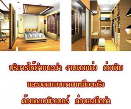 ให้คำปรึกษาแนะนำแนวทางการตกแต่งการเลือก ใช้วัสดุขั้นตอนการดำเนินงานจากมืออาชีพโดยตรง ออกแบบด้วยคอมพิวเตอร์ 3 D ให้คุณเห็นภาพก่อนลงมือทำ รับทำตามแบบและงบประมาณของคุณ หรือออกแบบและประมาณราคาให้ ฟรี