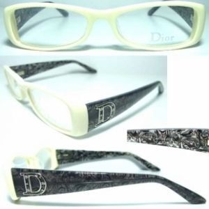 แว่นสายตา Dior เต็มกรอบ กรอบสีไข่ไก่ ตัวขามีลายสวยมาก โลโก้เป็นเหล็ก