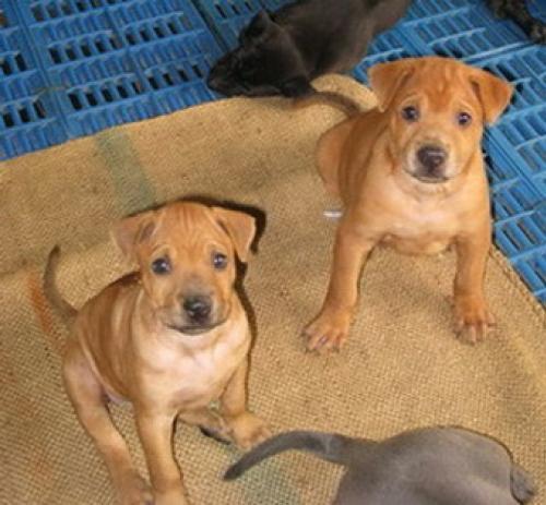 ลูกสนัขไทยหลังอานสีแดง ดำและสีกลีบบัว