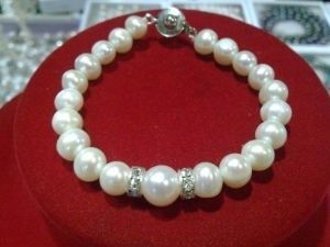 - สร้อยมือประกอบด้วยมุกแท้เม็ดกลมทุกเม็ด