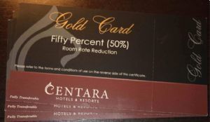ขายบัตรลด 50% Gold card โรงแรมและรีสอร์ทเครือ centara เพียง 500 บาท มี 3 ใบ ซื้อ3 ใบ ลดเหลือ 1000 บาท แถม บัตรลด 20% สมาชิกฟิตเนท