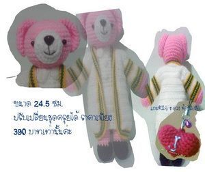 ตุ๊กตาถักสวมชุดครุยขนาด 24.5 ซม. สามารถปรับเปลี่ยนสีตุ๊กตาและชุดครุยตามสถาบันค่ะ