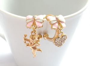 ตุ้มหู/ต่างหู Cupid สีทอง ประดับรูปผีเสื้อชมพู น่ารักมากๆค่ะ
