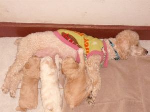 ขาย ลูกสุนัข พุดเดิ้ลแท้ อายุ 1 เดือน เพศผู้ => สีน้ำตาล 2 ตัว สีขาว 1 ตัว