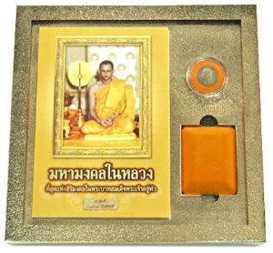 บรรจุในกล่องทอง ติดกระจกใส พร้อมเหรียญคุ้มเกล้า เนื้อนวโลหะ จัดสร้างปี 2522 พระบาทสมเด็จพระเจ้าอยู่หัว ทรงเสด็จพระราชดำเนินประกอบพิธีเททอง