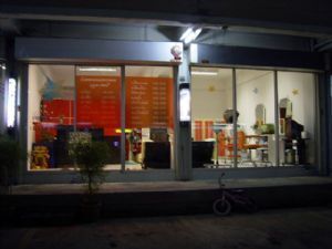 หน้าร้านติดกระจกอย่างหนา ทั้ง 2 ห้อง พร้อมทั้งสกรีนราคารายการไว้หน้าร้านด้วย