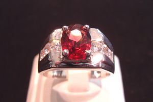 แหวนเงินแท้100%ชุบทองคำขาว ประดับพลอยโกเมนแท้ ประดับเพชรสวิตAA