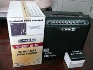Amp Line 6 Spider III ขนาด 30 Watts จะมีแบบแอมป์ให้เลือก 4 แบบ(channels) : Clean, Crunch , Metal และ Insane เป็นการจำลองเสียงของแอมป์ยี่ห้อดังๆหลายยี่ห้อ มาไว้ในแอมป์ตัวนี้ พร้อมด้วยอีก 6 Effects คือ Chorus , Phaser , Tremolo , Sweep Echo , Tape Echo , Reverb (เล่นพร้อมกันได้ 2 effects) สำหรับช่องต่อ จะมี 3 ช่อง คือ CD/MP3 In , Phones/Record out และ FBV Pedal สามารถเสียบเครื่องเล่น MP 3 หรือ CD player เล่นพร้อมกับ solo ตามกันไปได้เลย นอกจากนี้ยังแถม Foot Switch รุ่น FBV 2 ให้อีกด้วย (สายLink ยาวมากๆ)