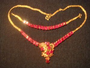 สร้อยคอทองคำพลอยทับทิม ประกอบด้วยพลอยทับทิมเม็ดใหญ่ 22 เม็ด เม็ดเล็ก 28 เม็ด
