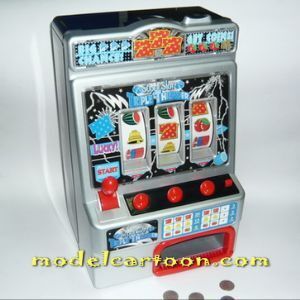 ใส่ ถ่านก้อนใหญ่ ( เบอร์ D 4 ก้อน ) ยอดเหรียญที่ด้านบน แล้วดึงคันโยกลงมา ภาพทั้ง 3 ช่องจะหมุน จากนั้นก็กดปุ่มหยุดทั้ง 3 ปุ่ม ถ้าภาพตรงกัน 2-3 ภาพ เหรียญก็จะไหลออกมา