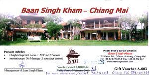 ขายแพคเกจที่พัก Baan Singh Kham-Chiang Mai 2 คืน 2 ท่าน พร้อมอาหารเช้าและนวดน้ำมัน 2 ช.มต่อท่าน ในราคา 1,000 บาท