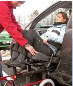 เก้าอี้ รถเข็นสำหรับผู้ป่วย ผู้พิการ นี้สามารถถอดแยกส่วนที่เป็นเก้าอี้เพื่อประกอบเข้าไปอยู่ในตัวรถยนต์ใน ตำแหน่งที่นั่งด้านหน้าข้างคนขับรถ โดยที่ผู้นั่งรถเข็นไม่ต้องลุกออกจากที่นั่งเลย และเมื่อออกจากตัวรถยนต์ก็จะประกอบชุดเก้าอี้กลับไปเป็นเก้าอี้รถเข็นเหมือน เดิม สามารถกระทำภารกิจทั้งหมดนี้ได้เพียงคนคนเดียว และติดตั้งได้กับรถเก๋ง