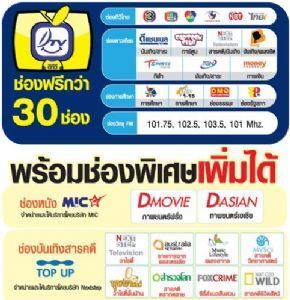 รับทีวีไทย ช่อง 3 5 7 9 11 TPBS การศึกษา 15 ช่อง TGN, ETV, Money Channel, DMC, รัฐสภา, ดีแชนแนล, การ์ตูน, NEXTSTEP, T-SPORT, BANG