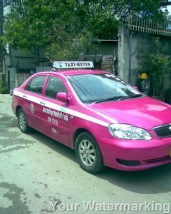 ขายรถแท็กซี่มือสอง สีชมพูคาดขาว สภาพดี เหลือวิ่งแท็กซี่ อีกหกปีกว่า