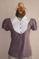เสื้อผ้าฝ้ายสีม่วงอ่อน ปกเสื้อสีขาวไซด์ S
