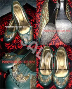 ขายรองเท้าส้นสูงสีเขียวหยก มีลาย ขนาดเบอร์ 36
